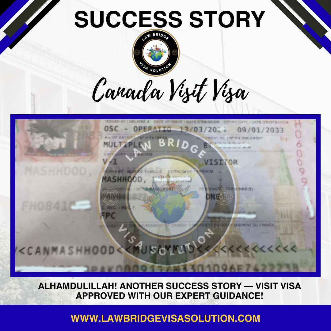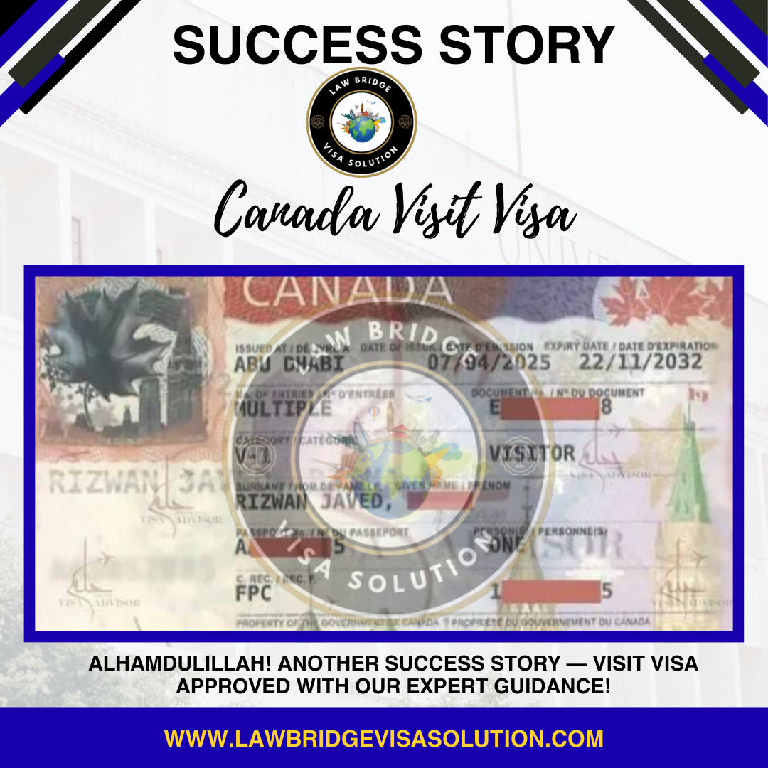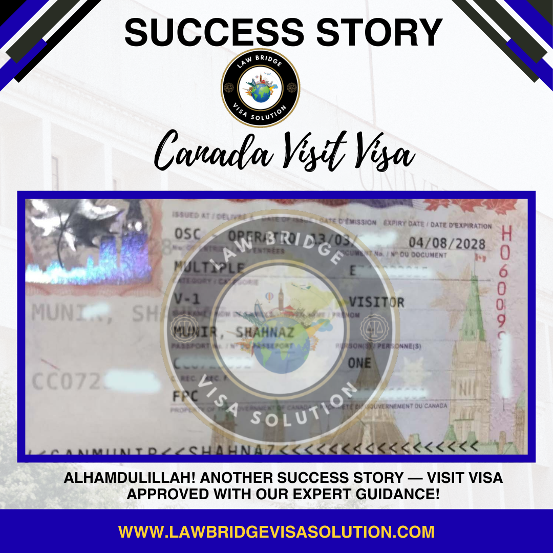 New Success Milestone: Canada Multiple Entry Visit Visa Approved! At Law Bridge Visa Solution, our mission is to simplify the complex world of immigration for our…