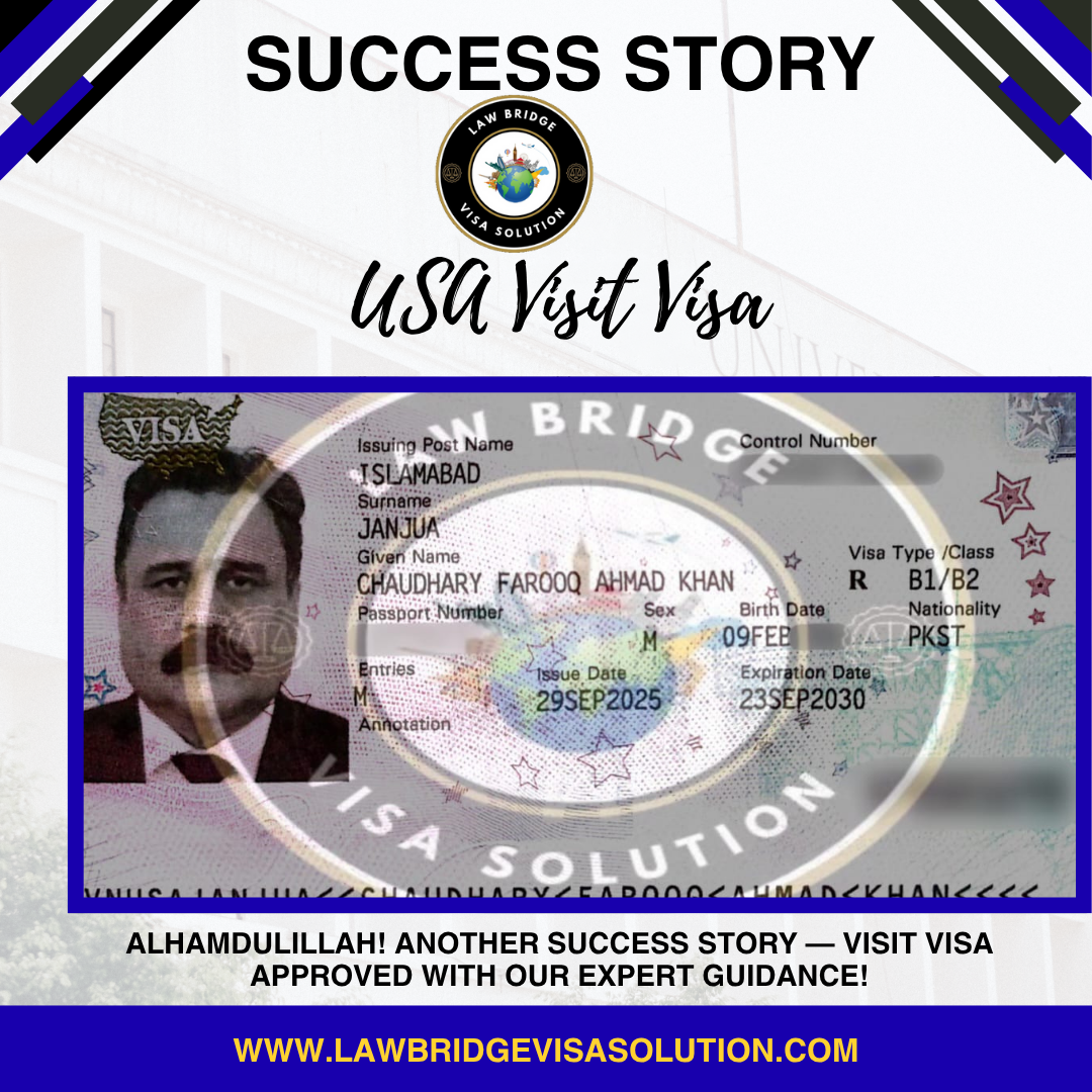 Milestone Achievement: Canada Multiple Entry Visit Visa Approved! At Law Bridge Visa Solution, based in the heart of Lahore, we take pride in turning global…