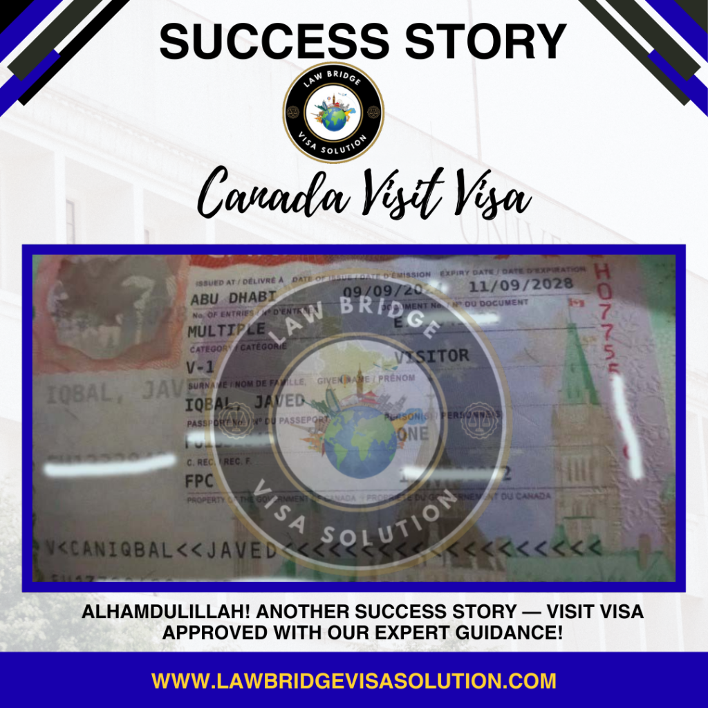 At Law Bridge Visa Solution, our mission is to simplify the complex world of immigration for our clients in Lahore and beyond. We are thrilled to share another successful result: a Canada Visit Visa (V-1 Category) has been officially approved for our client, Mr. Javed Iqbal.